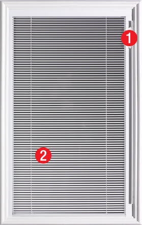 You control the level of light and privacy with a simple handle 1 that opens, closes and tilts the blinds. Built-in privacy bars 2 eliminate visibility into or out of your home, while helping to reduce sun glare.