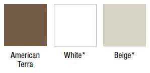 * Extruded solid color. ** White woodgrain is available with a beige base only; white woodgrain is not available for 6400 Series Patio Doors. Note: White and Beige windows will have matching interior hardware. Windows ordered with a Light Oak, Dark Oak or Rich Maple interior will receive Pontiac Gold hardware. Windows ordered with a Cherry or Foxwood interior will receive Brown hardware.