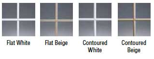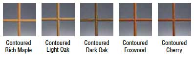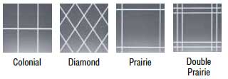 Classic grids are available in complementary White or Beige, with colonial, diamond, prairie and double prairie patterns. Contoured colonial grids feature a modeled “cut wood” look and are available in complementary colors and in matching woodgrains.